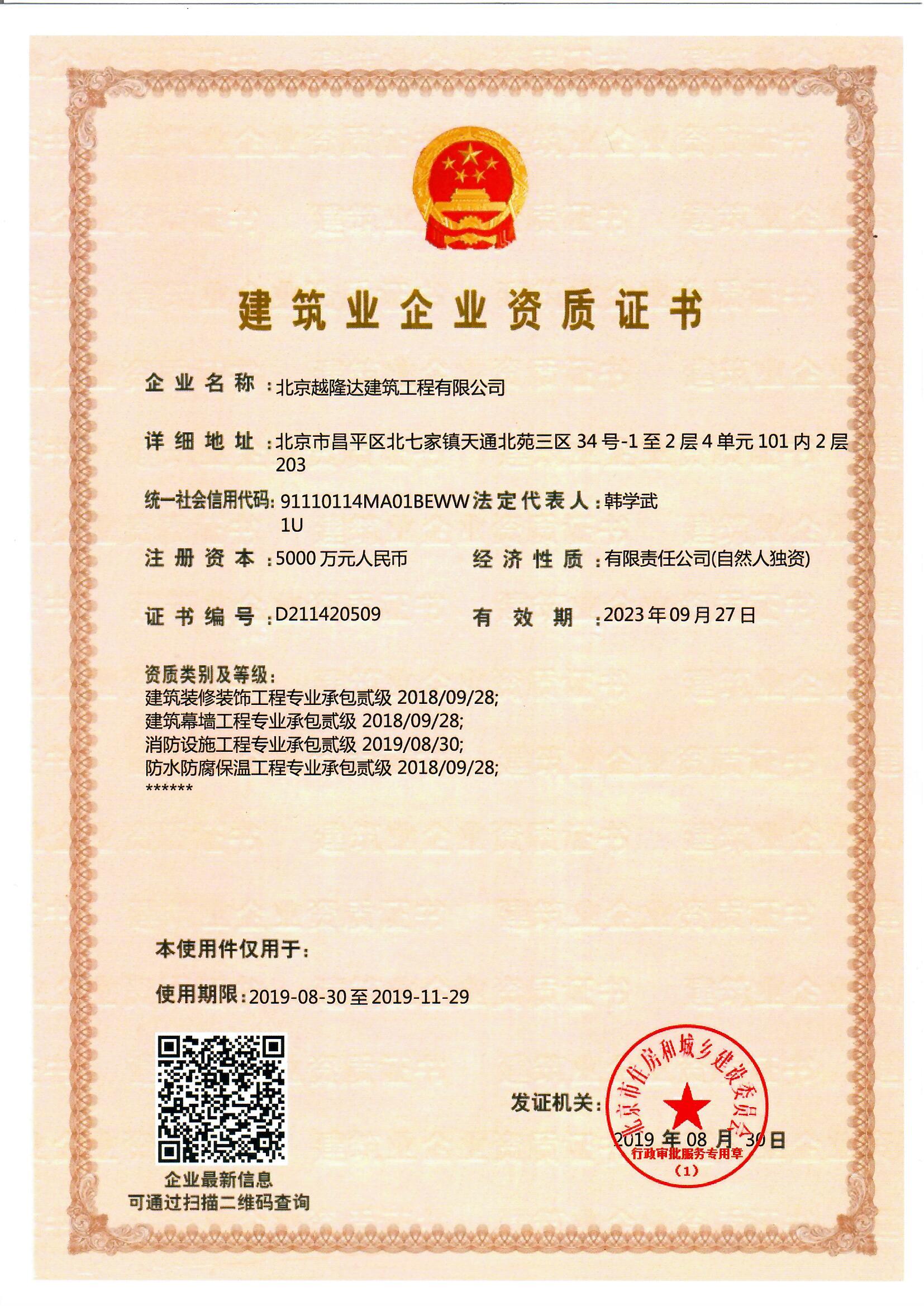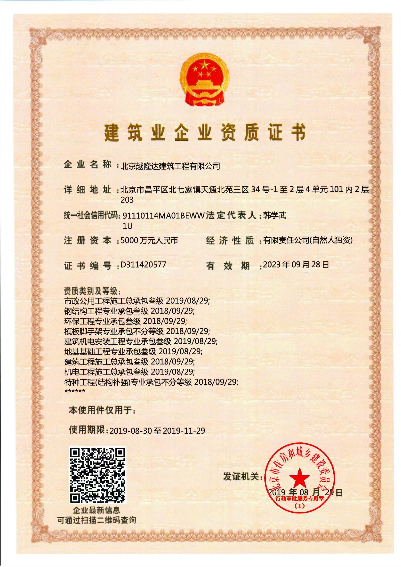 建筑业企业资质证书