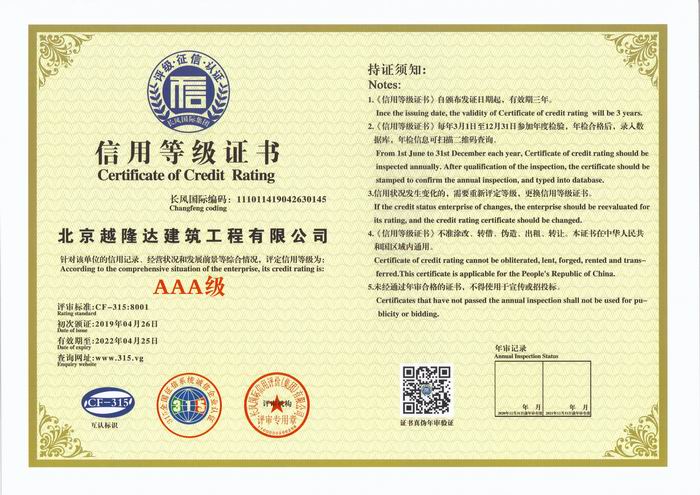 信用等级证书